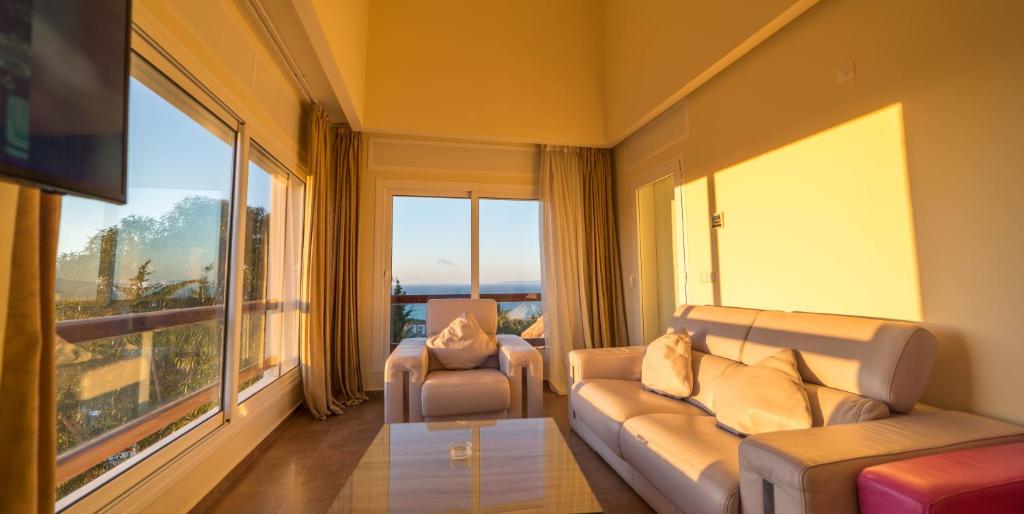 - Tous les appartements sont dotés d'une cuisine entièrement équipée, d'un salon et de plusieurs coins salon avec vue sur la mer et sur le jardin. Ils comprennent une salle de bains privative avec douche et toilettes.