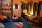 - Chambres luxieuses climatisées avec des lits en fer forgé et Baldaquin,ses murs se font en Tadalakt donnant sur un jardin et des montagnes. Dans la chambre, il y a une douche chaud et lavabo fait en cuivre et robinet en ncuivre fait à la main datan t de plusieurs années.