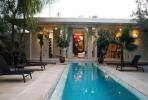 LE PLUS DESIGN DU MAROC: DAR SABRA HOTEL MARRAKECH HÔTEL DE LUXE DANS LA PALMERAIE DE MARRAKECH Au coeur de la mythique Palmeraie de Marrakech, aussi insolite que surprenant, Dar Sabra Hotel Marrakech,dévolu à l'art contemporain, est un lieu unique, à l'architecture cubiste et futuriste, conçu pour servir d’écrin à la sculpture et aux oeuvres du temps présent, oeuvres monumentales réalisées par des artistes de renommée mondiale. Dar Sabra Hotel Marrakech offre aux hôtes, le temps d'un séjour, une parenthèse cultivée où le beau se conjugue avec le bien et l’être dans un univers volontairement dépouillé. Le ton est donné, à Dar Sabra Hotel Marrakech l’art ne s'impose pas, il interpelle !!! Dar Sabra Hotel Marrakech est l'endroit idéal pour ceux qui cherchent le calme à seulement quelques minutes du centre de Marrakech. Au SPA, le Bien et l'Être sont conjugués. Rien ne manque pour s'offrir des instants de bien être dans un univers ultra raffiné, consacré à la beauté : Hammams version contemporaine, salles de massage et un bassin de nage chauffé dans lequel se dédouble le portrait du poète portuguais Fernando Pessoa, oeuvre de son compatriote Pomar. Relaxez-vous au tour des trois sublimes piscines extérieures, la salle de sport très high-tech et le terrain de tennis en terre battue permettent de se détendre en toute sérénité. Le chef propose une cuisine Marocaine traditionnelle ou Internationale à base de produits frais et des menus sur commande plus élaborés. Le choix est large, les saveurs variées. Les repas peuvent se prendre au bord de la piscine, dans les restaurants extérieur ou intérieur, dans la tente Berbère ou dans votre suite. Dar Sabra Hotel Marrakech est idéalement situé dans la prestigieuse palmeraie de Marrakech à 10 minutes du tumulte de la place Jemaa El Fna et à 5 minutes des golfs. Durant ce séjour à Marrakech, laissez-vous emporter par la magie du Maroc, les excursions en dromadaire, quadbike, buggy, vélo et à cheval dans le Palmeraie de Marrakech, les montagnes d’Atlas à seulement 1 heure de Marrakech,les plages d’Essaouira ou d'Agadir à 3 heures de route. Vous pouvez découvrir également Fes, Ouarzazate, Desert selon votre goût et votre budget. Nous proposons un service de navette gratuit jusqu'au centre de Marrakech pour faciliter les déplacements de nos clients avec un départ de Dar Sabra Hotel Marrakech à 10h, 14h et 18h et le retour à l'hôtel à 15h, 17h et 23h ( sur réservation ). Nous pouvons également organiser des transferts privés jusqu'au centre de Marrakech à 120 dhs par trajet ou bien le transfert aéroport de Marrakech à 200 dhs par trajet.