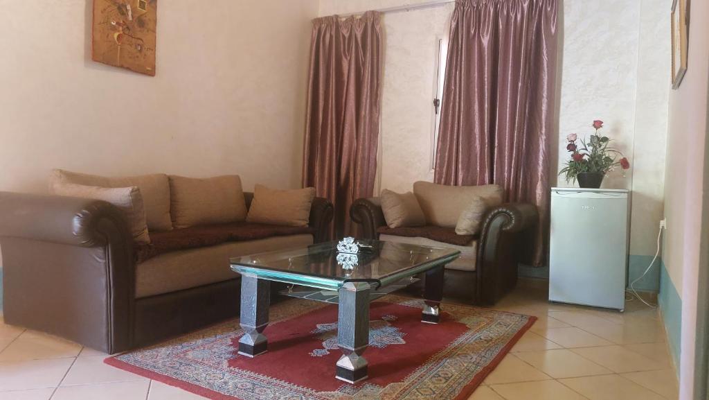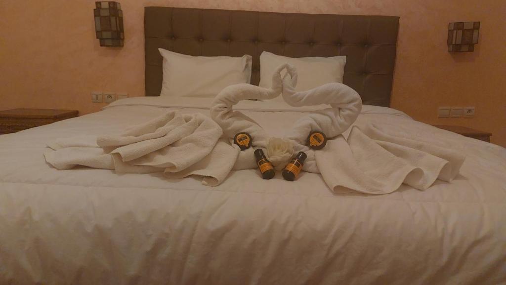 - Toutes les chambres climatisées du Kasbat Aferdou comprennent un coin salon, un bureau et une salle de bains privative avec des articles de toilette une douche ou une baignoire. Les chambres et suites sont équipées d’une climatisation réversible, d’une TV à écran plat par satellite, d’un réseau Wifi, de chaises en fer forgé et velours ainsi que d’une table basse.
