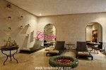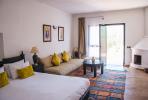 - Les chambres, décorées dans un style marocain traditionnel, comprennent du carrelage Tadelakt et des plafonds boisés. Elles possèdent la climatisation, une cheminée et une terrasse privée.