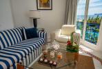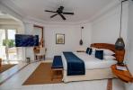 - Les Suites Exécutives ont une surface de 50 m² environ, avec une vue mer ou accès direct au jardin. Ils disposent d’un grand lit, un espace salon, un bureau, une Salle de bain, un Dressing et Sèche-cheveux. La salle de bain est équipée d’une baignoire.