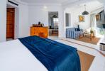 - Les Suites Exécutives ont une surface de 50 m² environ, avec une vue mer ou accès direct au jardin. Ils disposent d’un grand lit, un espace salon, un bureau, une Salle de bain, un Dressing et Sèche-cheveux. La salle de bain est équipée d’une baignoire.