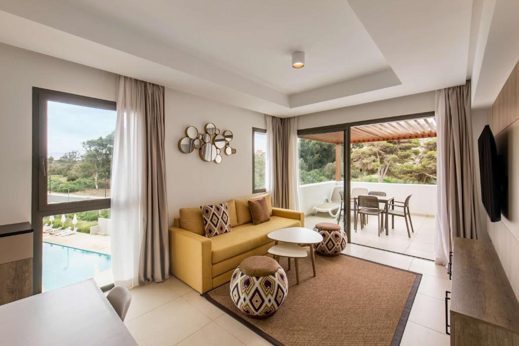 Situé sur l’une des plus belles baies méditerranéennes, le Radisson Blu Residences, Al Hoceima offre une vue imprenable sur l’océan et le jardin. Les chalets et bungalows offrent un pied-à-terre confortable près du bord de mer dans la fascinante région côtière d’Al Hoceïma. Les chambres sont élégamment conçues afin de vous offrir un confort optimal. Avec un accès direct à la plage et à seulement 7 kilomètres du centre-ville, vous pourrez profiter du meilleur des deux mondes. Profitez de la tranquillité et du calme de ce joyau sur la côte méditerranéenne en explorant la plage de Sfiha Beach, longue de près de deux kilomètres et située à votre porte, ou visitez les bâtiments et les ruines historiques. Pour profiter au maximum de votre séjour, passez votre journée à la plage ou dans l’une de nos piscines, et bien sûr, restez connecté grâce à l’accès Wi-Fi gratuit dans l’ensemble de notre résidence.