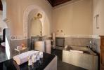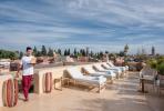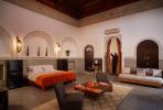 - Les chambres élégantes - avec vue sur le patio - sont décorées dans le plus pur style oriental. De hauts plafonds, un éclairage aux lanternes et des salles de bains construites en tadelakt, un enduit à la chaux typiquement marocain. La Suite Karma dispose même d’un plafond délicatement sculpté dans le bois et d’un bain de style japonais. Lieu incontournable de la vie dans le riad : la terrasse sur le toit, l’une des plus hautes de Marrakech, où vous pourrez tout à tour bronzer, déguster un thé et profiter de la vue sur la médina.