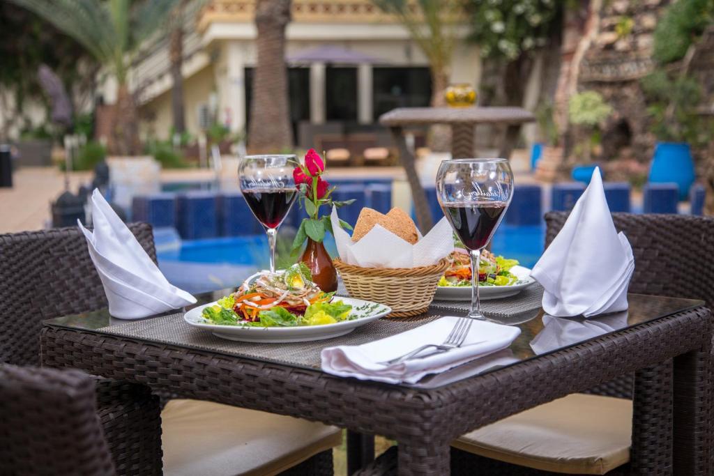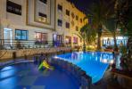 Alliant modernité et tradition marocaine, l'Atlantic Hotel dispose d'une piscine extérieure et de deux terrasses. Il se situe dans le centre d'Agadir à 10 minutes de la plage. Les chambres carrelées, et climatisées sont équipées d'une télévision Led par satellite et d'un coffre-fort. Par ailleurs, les salles de bains privatives sont pourvues d'une baignoire ou d'une douche et de toilettes. L'Atlantic Hotel sert un petit-déjeuner buffet chaque matin dans le restaurant. En soirée, vous pourrez y savourer une cuisine marocaine traditionnelle et vous détendre au bar. Vous pourrez profiter d'un massage à l'huile d'argan et vous prélasser sur la plage privée équipée de transats gratuits. La réception ornée de mosaïques propose un service de change 24h/24 et une connexion Wi-Fi est disponible dans l'ensemble de l'établissement. L'aéroport d'Agadir est situé à 25 km de l'hôtel et un parking est disponible gratuitement à l'hôtel. Un terrain de golf se trouve à 5 km et une discothèque à 700 mètres de l'établissement.