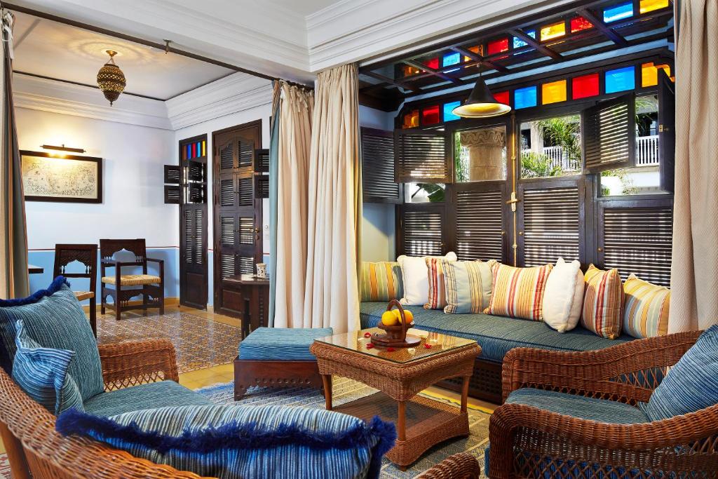 Ouvert toute l’année, à quelques mètres des plages de Mogador et aux portes de la Médina, L'hôtel offre 33 chambres et suites aux thèmes et aux décorations différentes. Anglaise (graveurs retraçant la conquête des ocres), portugaise (couleurs claires, bleues et beiges), africaine (tissus de peau et tresses) ou orientale (or et bourgogne), elles offrent toutes raffinement et confort haut de gamme.